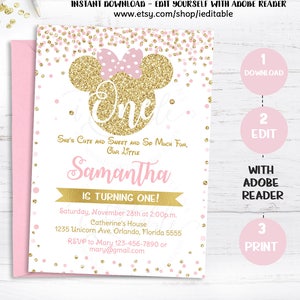 1st birthday minnie mouse birthday invitation template free download. Free printable downloadable invitations templates for your next awesome party. Click here to browse the available invitations and edit it online with drevio canvas. Since this is an eye catching design for a birthday invitation it will be a wonderful yet unforgettable birthday party to celebrate the first year of your daughter. Download the lovable mouse.