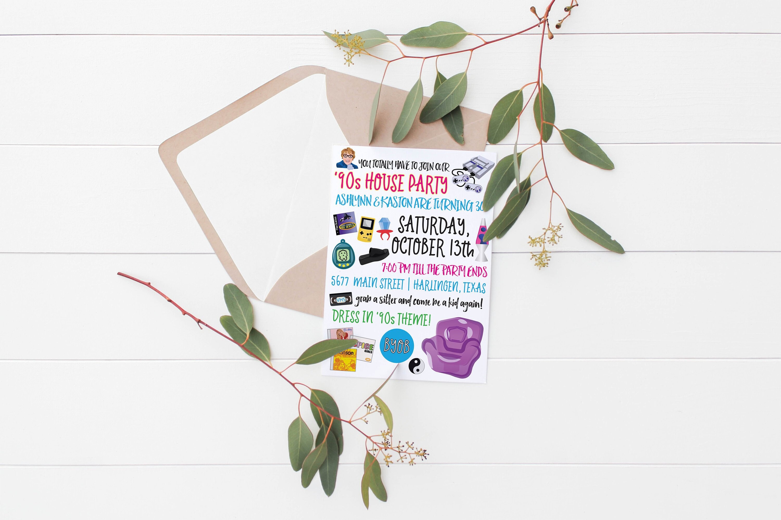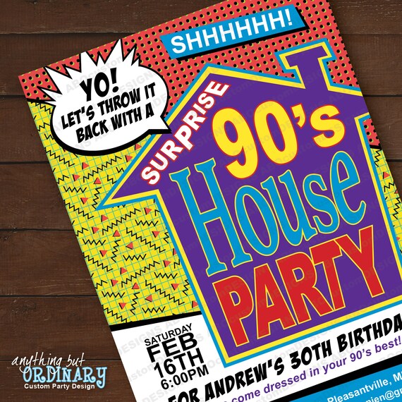 Includes a template for personal customization. Printable 90s theme party invitations description. 90s house party invitation house party flashback birthday invite printable 1990s throwback party invites digital file. They are word files that allow you to simply type in your party information and print.