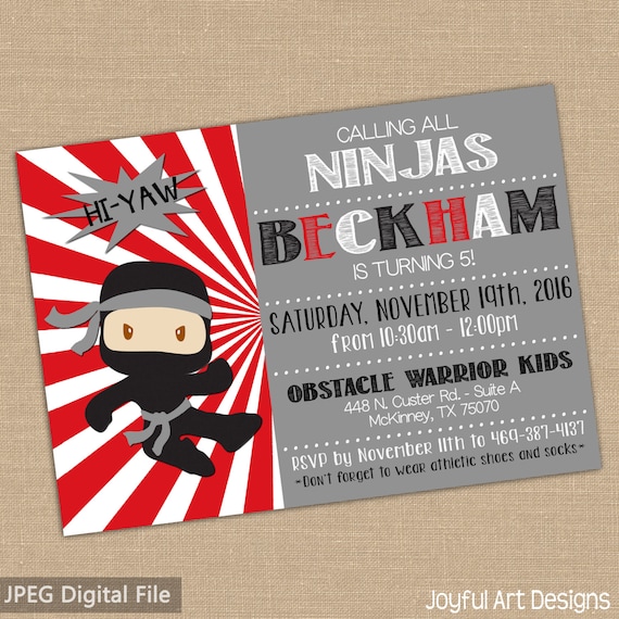American ninja warrior birthday invitation template. 5 out of 5 stars 1 1 reviews. Use these free printable american ninja warrior birthday invitations to rally up all the contestants you would like at your party. 5 out of 5 stars 36 36 reviews 500 free. Ninja warrior printable invitation ninja warrior birthday invitation digital invitation pitupitushop.