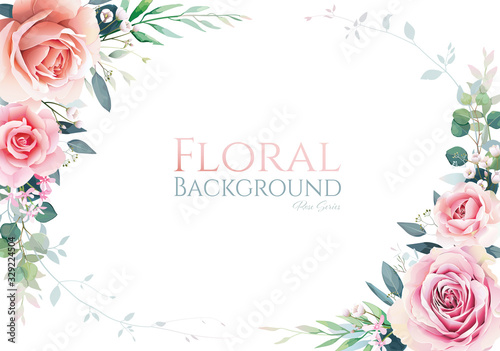 Pink And White Rose With Greenery Frame Border On White Background Beautiful Template For Wedding Invitation Or Greeting Card Banner All Elements Are Isolated And Editable Vector Buy This Stock Vector