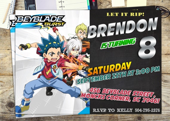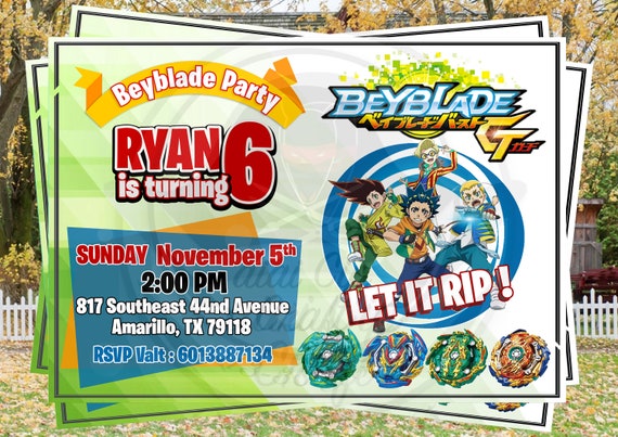 Beyblade inspired invitation beyblade printable invitation beyblade birthday invitation beyblade digital invitation pitupitushop. Beyblade let it rip inspired landyard birthday in beyblade birthday invitation template beyblade birthday invitation template cards for birthday events can be found available in the market. Theyve varied prints on them just like the print of a cartoon character on it. Beyblade invitation beyblade birthday beyblade party beyblade invites beyblade printables beyblade printable invite beyblade burst kinderwickstudio 5 out of 5 stars 72 au 1459 favourite.