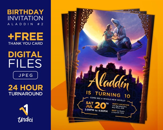 Favorite add to. 5 out of 5 stars 28 28 reviews 1000. A new fantastic point of viewwell you can continue singing when im finishing this post. Today we provide free printable aladdin birthday invitation templates.