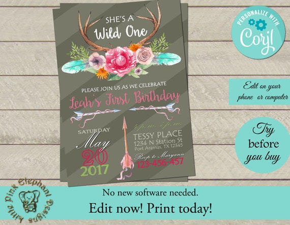 Birthday invitation templates wild one. Today we have wild one theme for children. Theres no better way to celebrate your babys first birthday than with a wild one birthday theme. We have many themes of birthday invitation templates both for children and adults. With our variety of designs for every party theme customizable text and fonts you can fine tune your invitation to keep the secret of a surprise ask for charity donations in lieu of gifts include parking instructions whatever will keep your event on track.