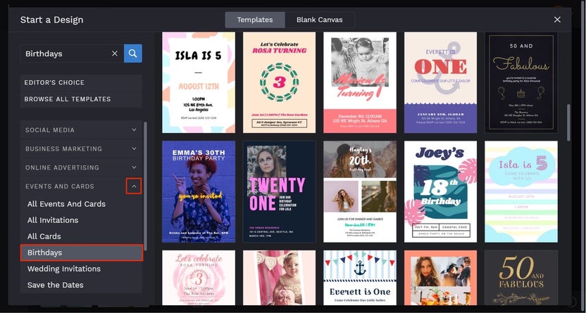Create your own party invitation cards in minutes with our invitation maker. Apple mac pages microsoft publisher adobe illustrator ai. Youll find an overflowing gallery of options in assorted styles and designs and our templates will guide you through the simple creating process in minutes. Dont worry though canvas got the design part down thanks to our free birthday invitation templates.