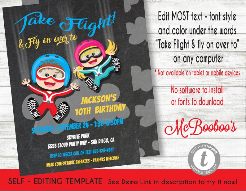 They can be customized to be specific to your birthday party with relevant dates locations and names. Click here to browse the available invitations and edit it online with drevio canvas. Print your templates onto some heavy cardstock personalize it and pop em in an envelope. Editable birthday invitations are designed with all types of birthday parties in mind.