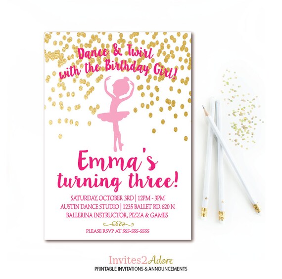 If you want to print an invitation card that is not too thick but looks luxurious then use art paper type of paper and glossy or doff printing type if you want matte results. Ballerina birthday invitations ideas. Ashley v plano. The owner will also send you a free jpg of your invitation so great for sending out via text email social media etc.