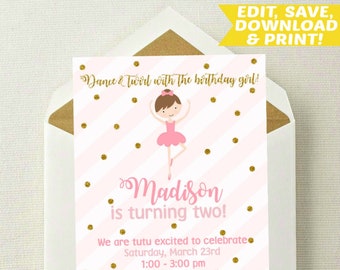 Click here to browse the available invitations and edit it online with drevio canvas. Download ballerina birthday invitation templates free. Everybody you know has a birthday. Personalize the printable template easily at home and get your birthday party started right now.