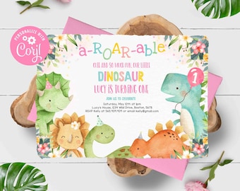 Editable Dinosaur First Birthday Invitation Card Invitations Online