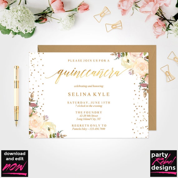 Blank free printable quinceanera invitation templates. This is amazing invitation template you can edit. It features watercolor flowers and clean minimalistic typography. Canva offers a wide collection of printable invitation templates you can use and personalize to suit any event. Adobe sparks quinceanera invitations templates let you customize your design and set the tone for this important celebration.