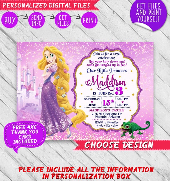 Before printing the royal rapunzel invitation template you need to buy the paper materials. The themed invitation template is free to download for a personal use. Rapuzel invitation with photo rapunzel custom birthday invitation personalized printable digital card. This kind of paper material is so convenient that you can find and buy the paper material in any kinds of bookstores and even drugstores.