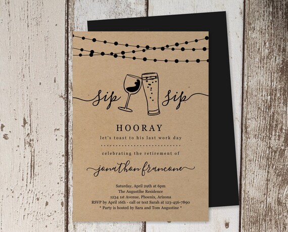 Planning a retirement party is hard enough so let canva take away the stress that comes with designing the invitations. Every party needs guests. Customize texts and fonts choose add a photo options make one of our hundreds of designs your own. Available in 5x7 inches bleed.
