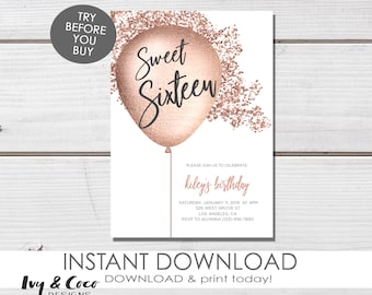 Strands or curtains of lights turn any location into a party venue and nothing says birthday louder than balloons. Choose from and customize any of our professionally designed printable invitation templates perfect for any occasion. Best 25 sweet 16 invitations ideas on pinterest from sweet 16 invitation template image source. Sweet sixteen invitations printable sweet 16 invites blush pink rose gold glitter printable invitation template instant download invite thesweet16store from shop thesweet16store.