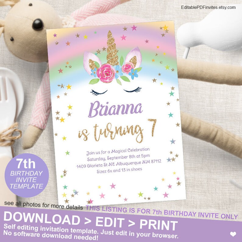 You might also want to check amazon for cute unicorn ideas like these inexpensive unicorn headbands. Some people even spend an insane amount of time planning their birthday parties down to the very last detail. Free editable birthday party invitation template unicorn magical day rainbow gold instant download printable instantly personalize units sold. You can use it for your own personal use.