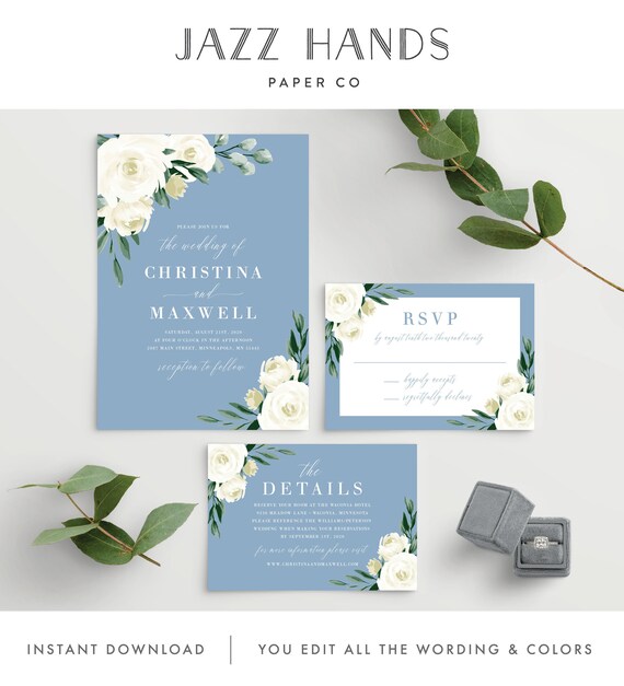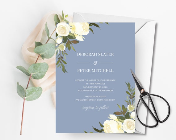 Blue and white wedding invitation template. It looks like youre interested in our blue and white wedding invitation. Watercolor branch on wedding invitation template. Modern text invitation from printable invitation kits. Guarantee that rsvp with the right blue and white invitations from zazzle.