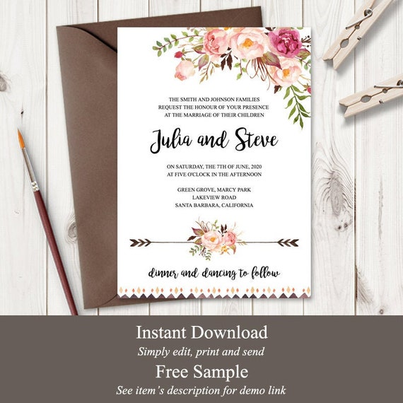Boho wedding invitation template free. Apr 4 2020 boho theme dreamcatchers wedding invitation set wedding invitation templates printable invitation kits. Today we offer you free printable watercolor greenery boho wedding invitation templatesthe designs are simple with green leaves background. Ethnic style wedding invitation card template with mandala. Instantly download free boho debut invitation template sample example in microsoft word doc adobe photoshop psd adobe indesign indd idml apple pages microsoft publisher format.