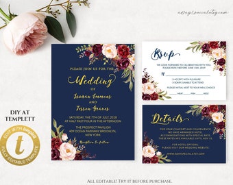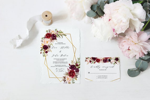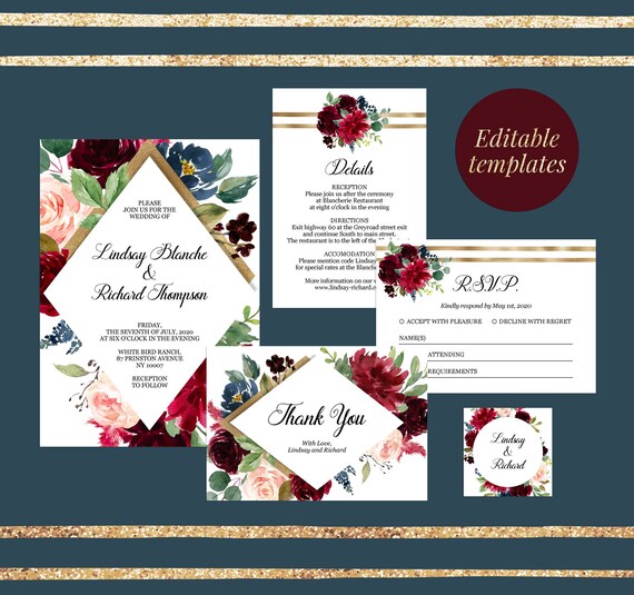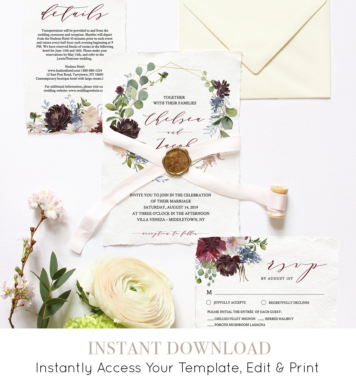 Burgundy and gold wedding invitation templates. Burgundy gold geometric wedding invitation suite blush floral wedding invitation editable template printable invitation download. There are 11791 burgundy wedding invitation template for sale on etsy and they cost 1330 on average. The most common burgundy wedding invitation template material is latex. Our burgundy and gold invitations start as low as 170 with reviews from 119 happy zazzle customers.