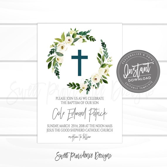 Catholic baptism editable blank christening invitation template. Easily editable printable. Along with the ceremony it represents the baby or childs new life in god. If you want your invitation to look formal and elegant we have classic and tasteful christian or catholic baptism invitations templates that will fit the bill. Jul 18 2015 an adorable selection of printable baptism invitations and christening templates that you can create yourself for your baby invitation.