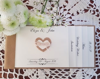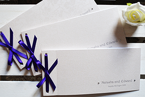 All of our cheque book invitations feature a front cover 2 pages inside and a back cover.