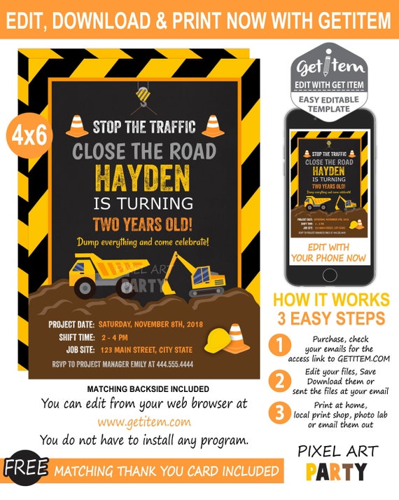 Download print or send online for free. Drevio is your 1 source to download free invitation templates for your birthday party wedding party and any occasions. Instantly download birthday invitation templates samples examples in microsoft word doc adobe photoshop psd adobe indesign indd idml. Download free printable construction party invitation templates.