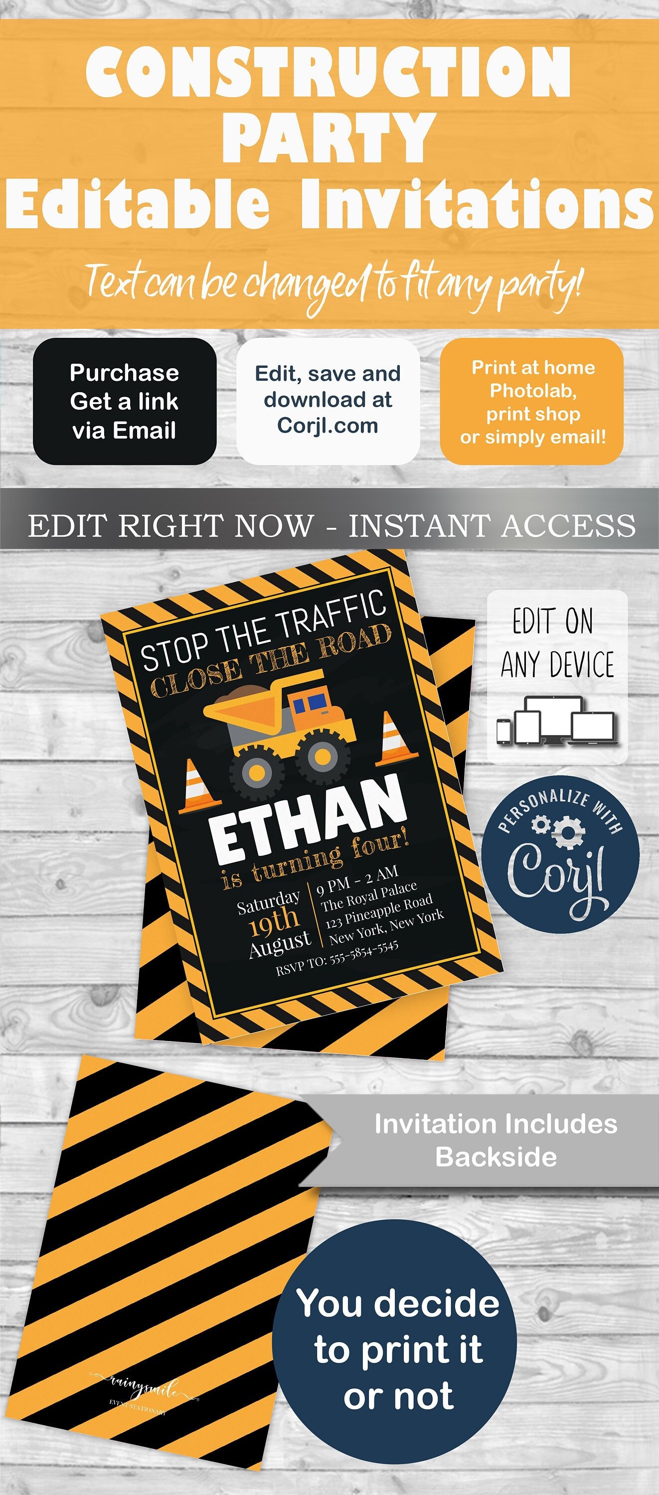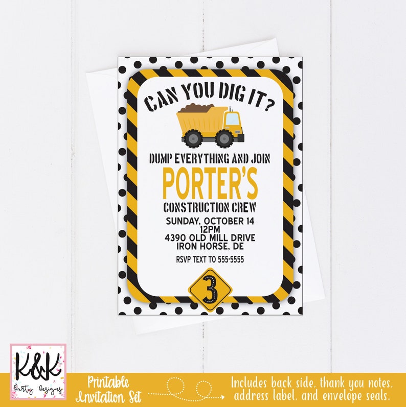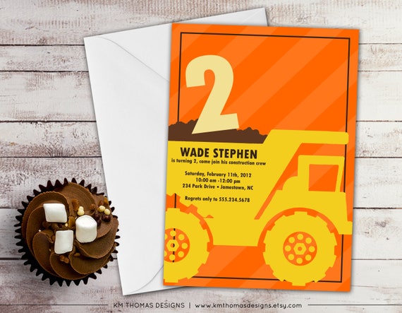 Dont worry though canvas got the design part down thanks to our free birthday invitation templates. There are excavator backhoe dump truck and bulldozer birthday party invitation where you can download it for free. Download our free construction invitation templates in a simple way. Read also free printable construction birthday invitation psd template or if youre not that techie guy you can simply print the invitation first then write down your party details by using a pen or a marker.