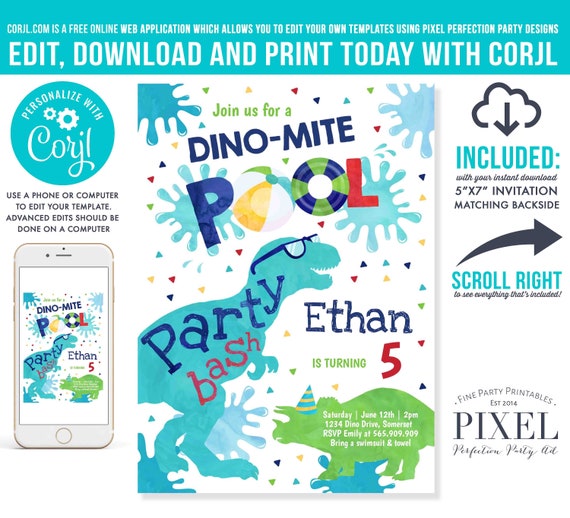 Click place and size from micro to macro. Click here to browse the available invitations and edit it online with drevio canvas. Dinosaur birthday party invitation birthday poster. These printable invites are fill in the blank so you can cater it to your specific situation.