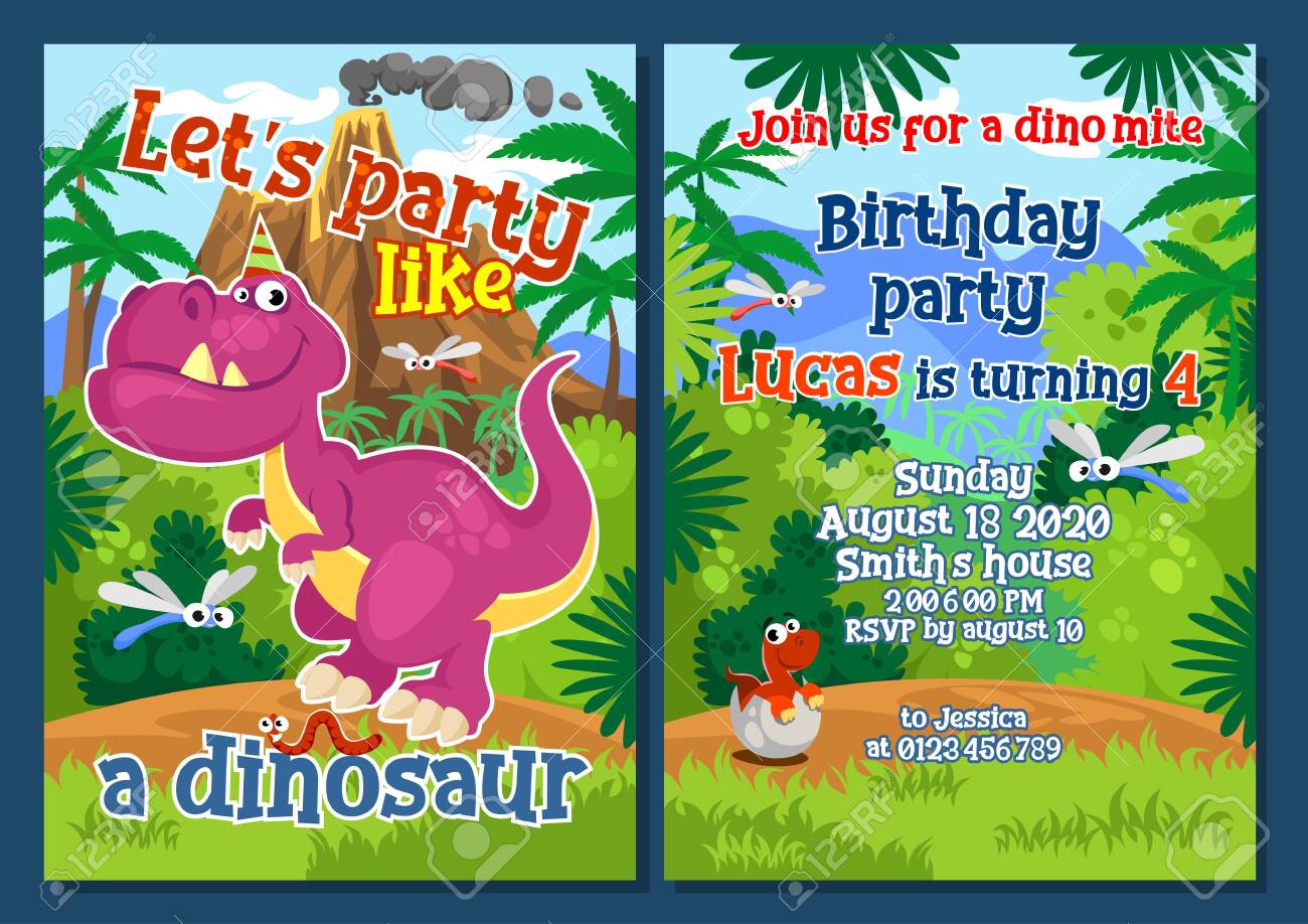 A self editable personalized dinosaur birthday invitation is a sample template that you can edit online print and then distribute to those who you would like to attend the birthday party of your child. Choose from 416 editable designs. Download this free vector about childrens birthday invitation template with dinosaur and discover more than 9 million professional graphic resources on freepik. 17 dinosaur birthday invitations how to sample templates from dinosaur party invitation template free.