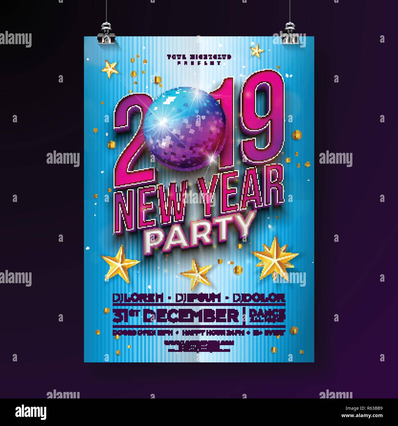 New Year Party Celebration Poster Template Illustration With 3d 2019 Number And Disco Ball On Shiny Colorful Background Vector Holiday Premium Invitation Flyer Or Promo Banner Stock Vector Image Art Alamy