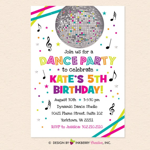 Neon Dance Party Birthday Party Invitation Glow Just Dance Party Disco Ball Music Digital Printable File Or Printed Cardstock Cards By Inkberry Cards Design Catch My Party