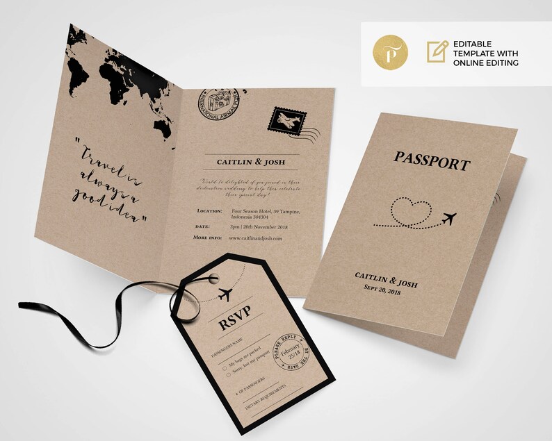 Step by step tutorial on how to make a personalized passport invitation using ms word and a browser. These invitation templates would help you design. Diy passport invitations passport style party invitations are a stylish way to invite friends to join your next adventure. Rustic passport wedding invitation template.