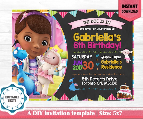 Free printable downloadable invitations templates for your next awesome party. Doc mcstuffins birthday invitation by lennys shop 425 digital and printable free cusotmization and translation service 4x6 or 5x7 size. You print your own invitations. No shipping cost and print as many invitations as you need.