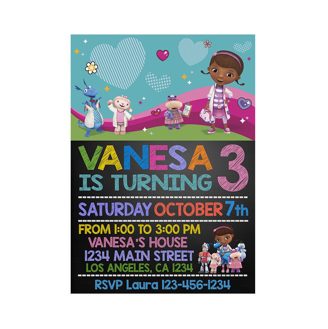 Here is a free printable doc mcstuffins birthday invitation for your little doctor. Listing is for one 5 x 7 printable doc mcstuffins invitation. Doc mcstuffins is one of the birthday party ideas kids party themes for girls girls birthday party ideas birthday party ideas for girls birthday party themes girls birthday themes with more success as almost any princess birthday party or princess partyits also one of the nicest kids party themes party theme ideas or party ideas no matter if its not a birthday party. Jpeg doc mcstuffins printable invitation.
