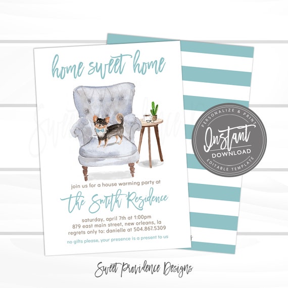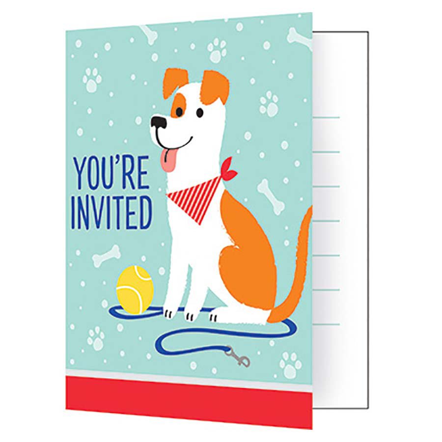 Pick your favorite invitation design from our amazing selection. Customize add text and photos. Simply open the dog party invitations up and print them out using your printer. The dog party invitation templates are saved as adobe pdf files.