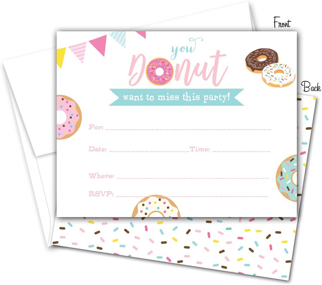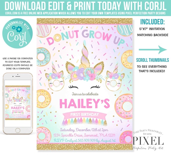 Click here to browse the available invitations and edit it online with drevio canvas. These invitations to look so yummy with 5 x 7 inches picture invitations layout and donuts everywhere. You have to make a great invitation party so that your friends colleagues and families are happy when receiving your invitations. Im also giving away a few free printable decor items as well.