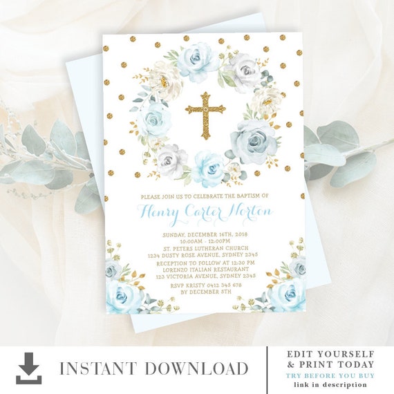 Whether you download print or send them online our baptism christening invitations are easy to personalize using our online invitation maker. Easily editable printable. For added convenience you may check out this website and look for more templates. Youll find an overflowing gallery of options in assorted styles and designs and our templates will guide you through the simple creating process in minutes.