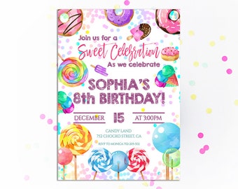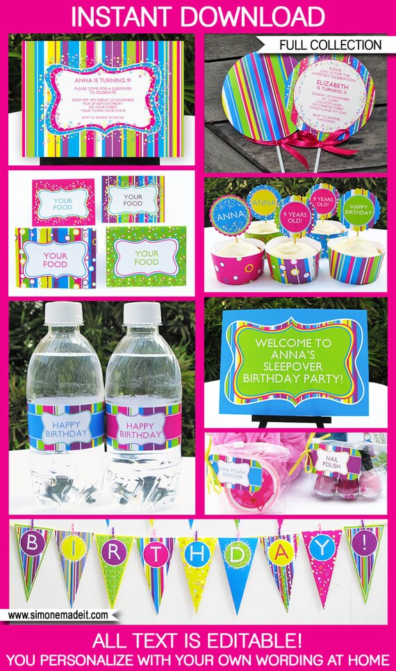 Candyland Birthday Party Invitation Decorations Templates Colorful Lollipop Full Printable Package Instant Download With Editable Text By Simonemadeit Catch My Party