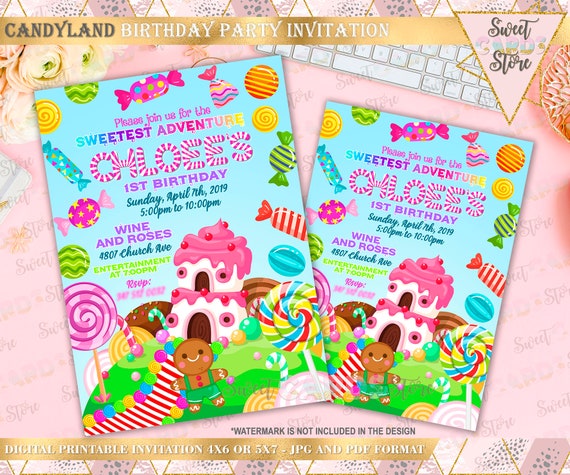 Candyland Printable Invitation Candy Shop Birthday Invitation Diy Candyland Bir Candyland Invitations Candy Land Birthday Party Birthday Party Invitations Diy