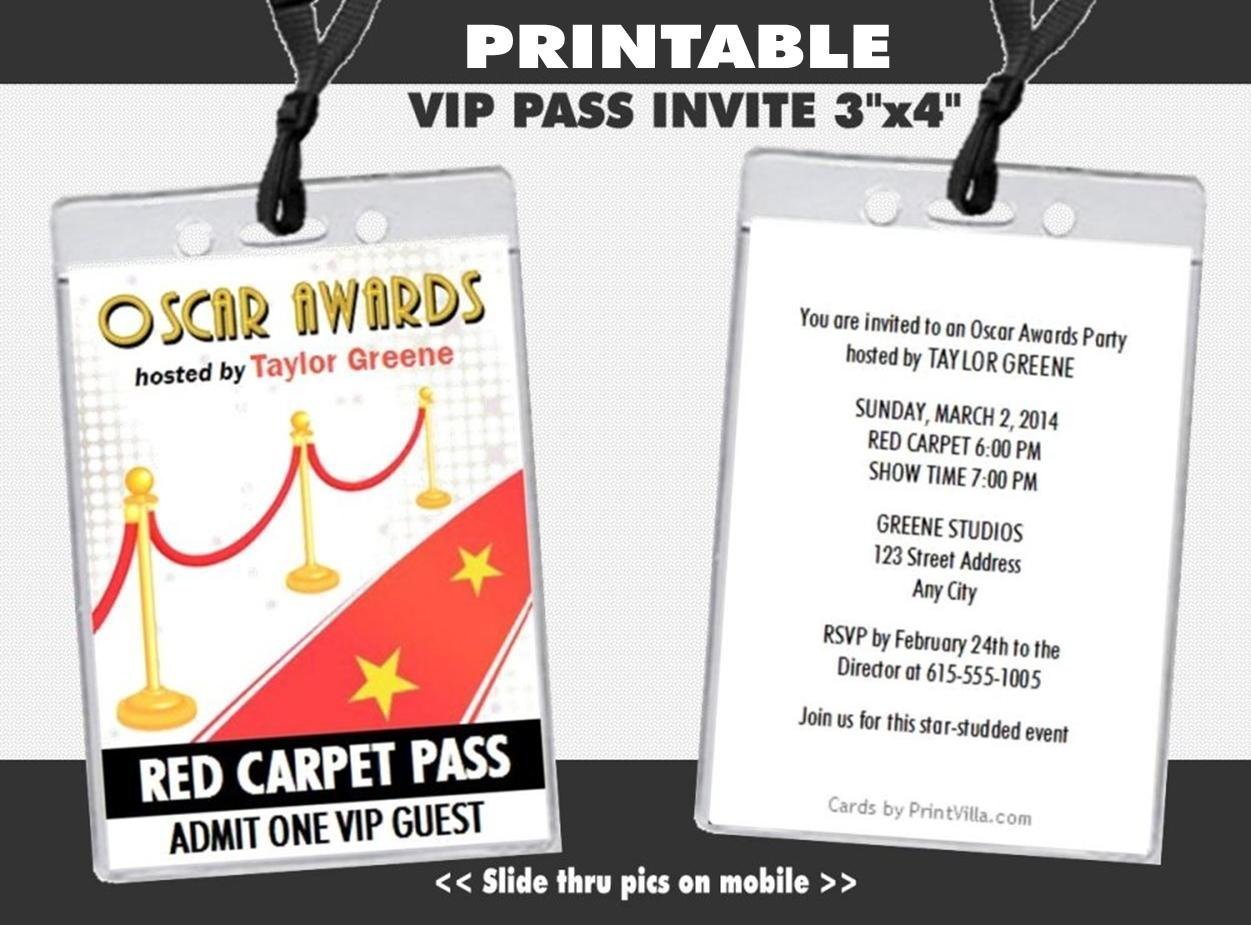 Amazon Com Red Carpet Oscar Awards Party Vip Pass Invitation Printable Handmade
