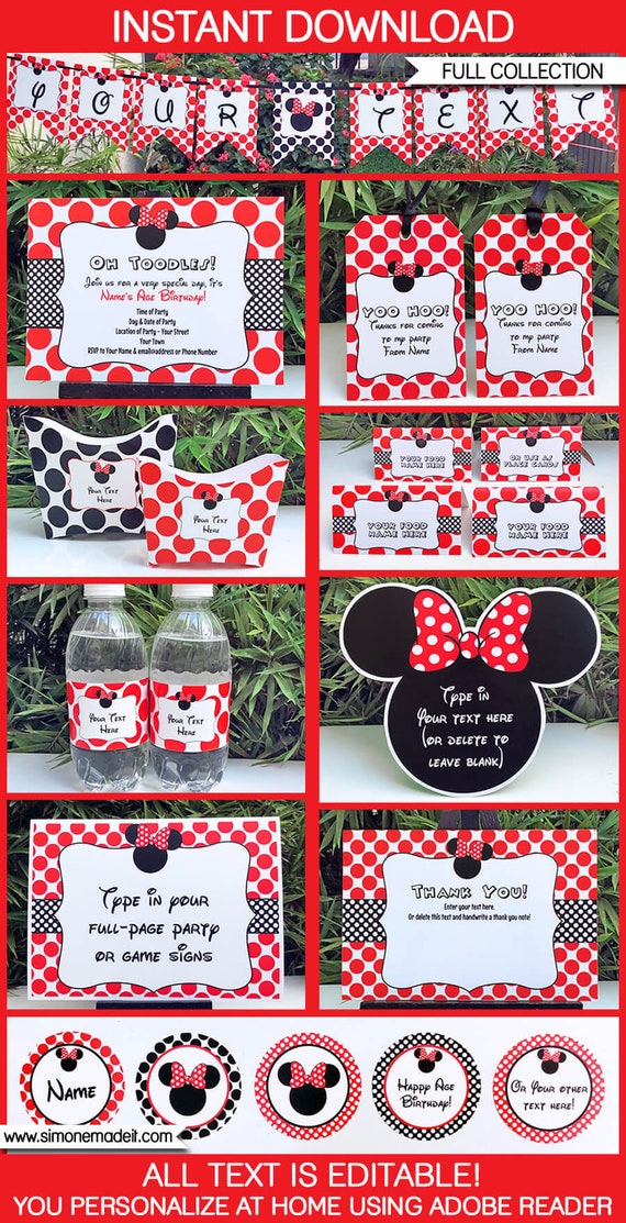 Downloadable blank red minnie mouse invitation template. Invitations treat bag toppers mini candy bar wrappers hershey kiss stickers birthday banner table tents water bottl. This for our little friends who love minnie mouse and mickey not so much. Click here to browse the available invitations and edit it online with drevio canvas. 5 out of 5 stars 68 68 reviews.