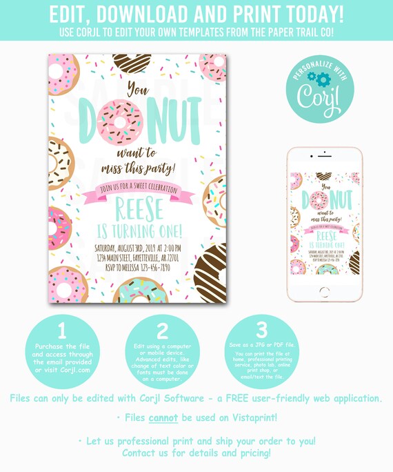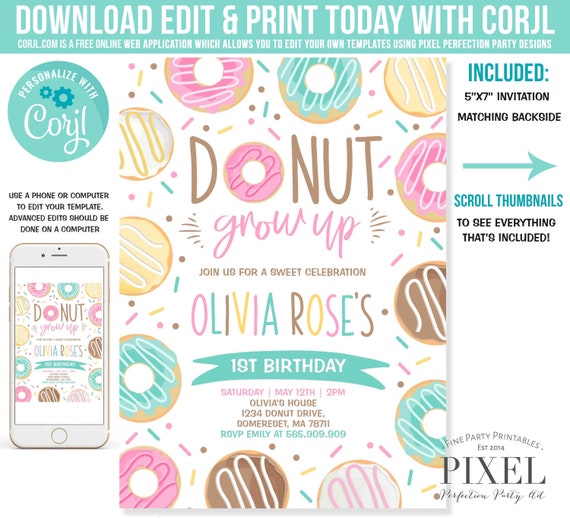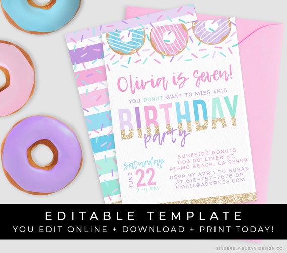 Free printable downloadable invitations templates for your next awesome party. Those colorful and pastel colors of donuts are specially what i like most about donuts not to mention they are sweet. This file is an editable file and must be edited in adobe reader a free program for the editable fields to work properly. Free printable downloadable invitations templates for your next awesome party.
