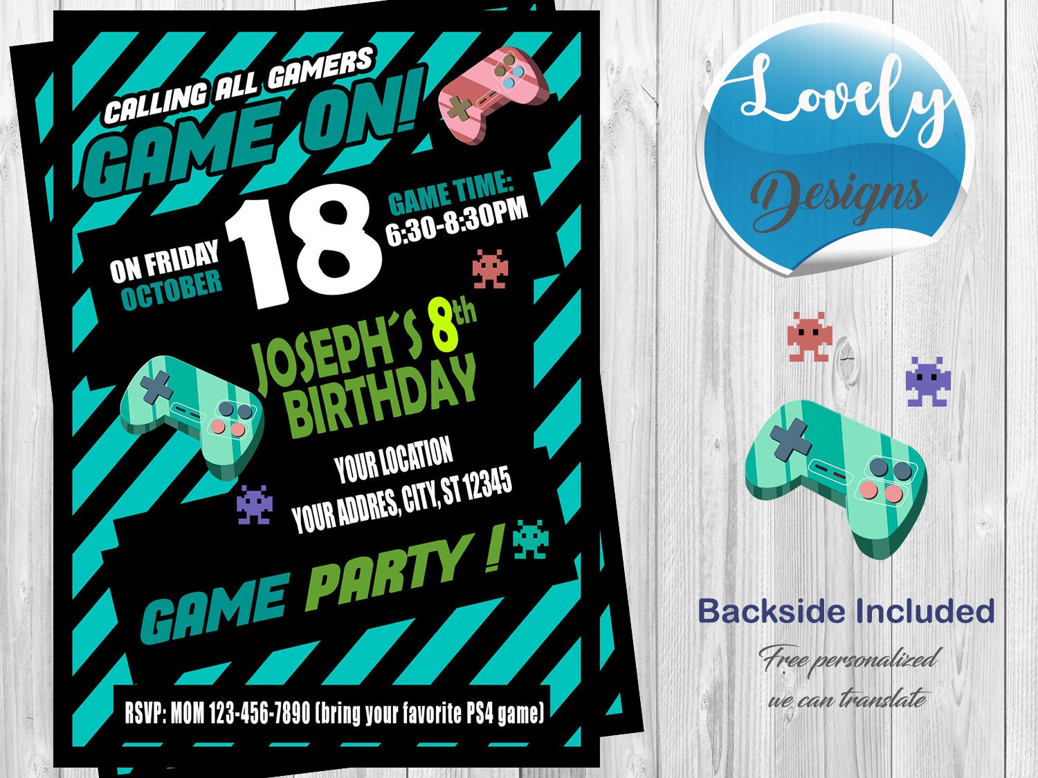 Video Game Birthday Party Invitation Retro Game Controller Invite Self Edit Text Instant Download Printable Template By Simplyeverydayme Catch My Party