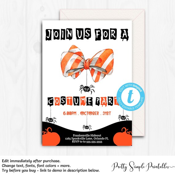 Easily editable printable. Available in us 85x11 a4 827x1169. Printable invitations by canva whether youre out to throw a bridal shower a graduation party or just looking for any excuse to party youll definitely want to create an attractive and custom made invitation to excite all your guests and have them look forward to the bash. Premium halloween party invitations.