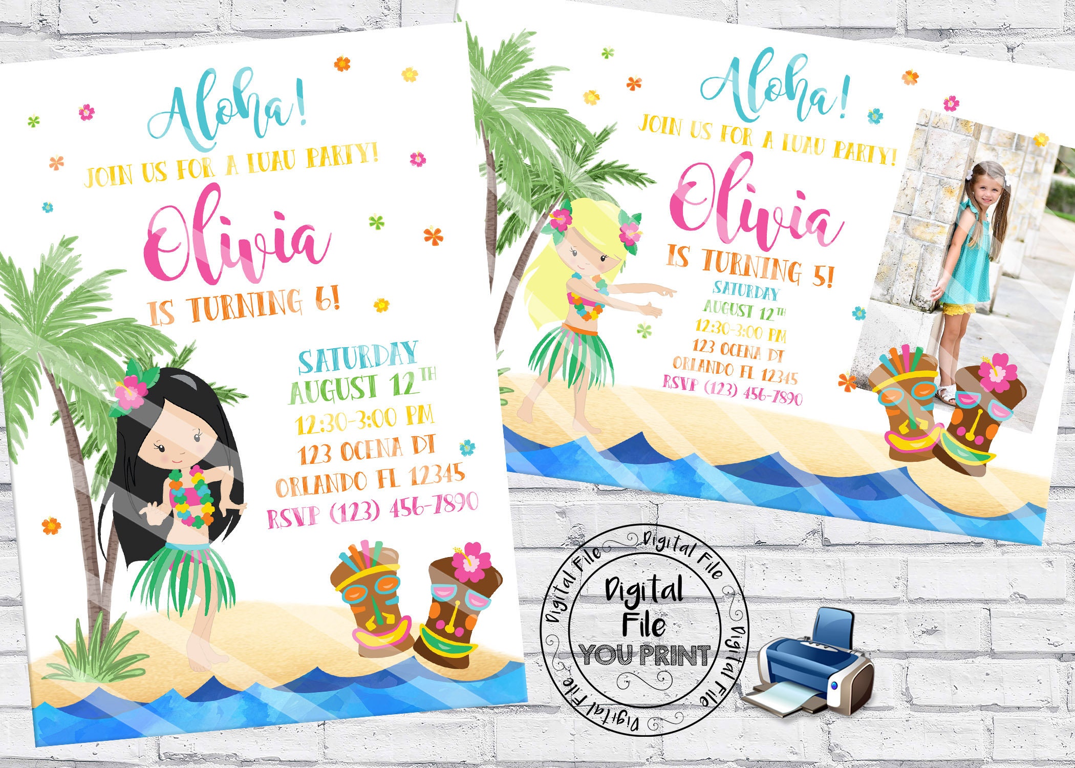 Moana Polynesian Girl Invite Tropical Summer Hawaii Luau Etsy