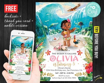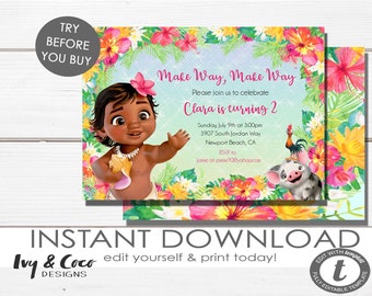 Moana Invitation Moana Birthday Baby Moana Invitation Etsy