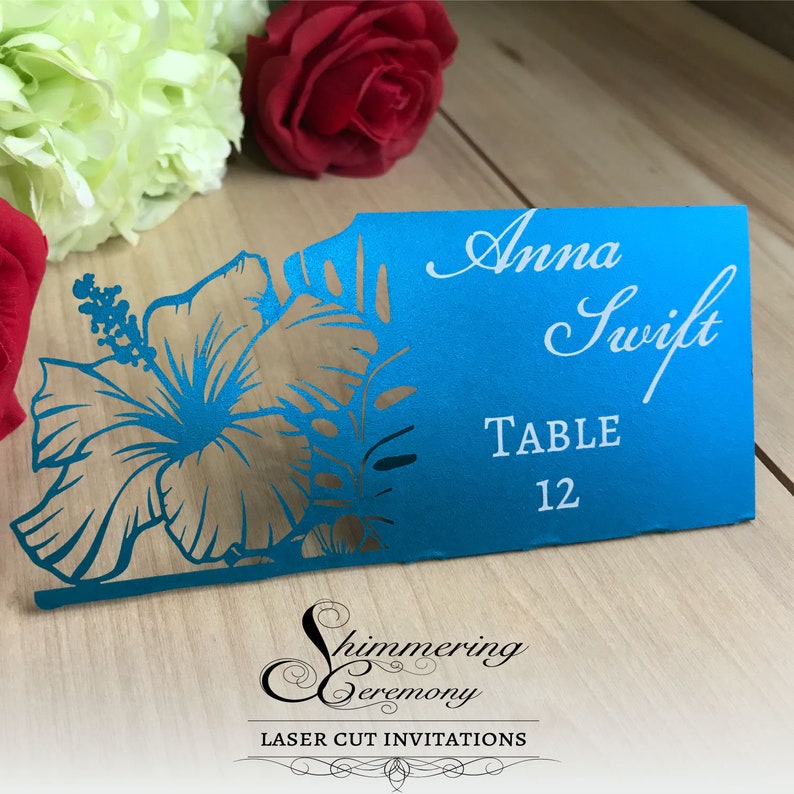 Hibiscus Flower Laser Cut Wedding Place Cards Hawaiian Escort Cards Moana Table Decorations Party Tropical Name