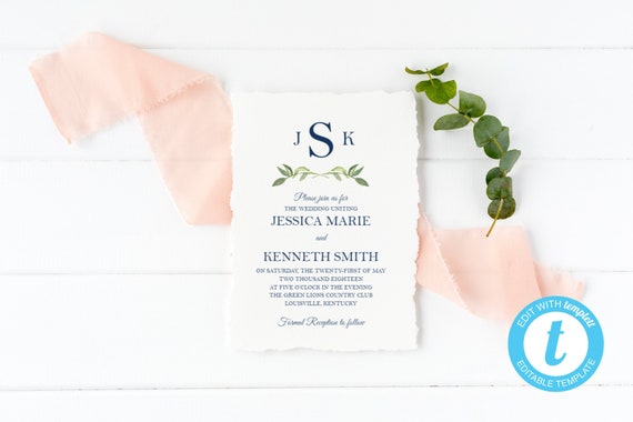 This anna maria navy blue printable invitation template is an instant download. Create yours in minutes now with canvas customizable and printable wedding invitation templates. There are invitations from engagement parties to save the dates to rehearsal dinners and of course invites to the wedding day itself. Wedding invitation template navy blush florals edit online download print.