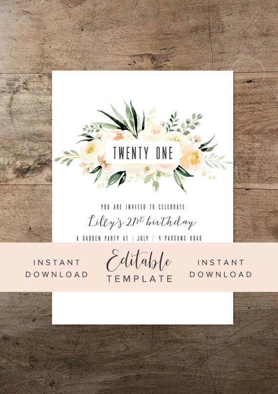 Editable Birthday Invitation Template Yellow Flowers And Greenery Celebrately