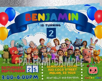 Editable birthday tarpaulin cocomelon invitation template. Instantly download birthday invitation templates samples examples in microsoft word doc adobe photoshop psd adobe indesign indd idml. Cocomelon birthday invitation jj invitation digital invitation printable invitation editable invitation personalized corjl reapwhatyousewstore from shop reapwhatyousewstore. Invitation card 5in x 7in your invitations can be printed onto 85x11 white card stock from home save as a pdf can print 2 per page. Theyre highly customizable which means you can take the template load it in the dashboard and find the right tools to add a personal touch to your invitation.