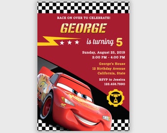 Editable cars birthday invitation template. Generally we use cartoon themed invitations for kids birthday parties. Just download the template and edit with your party details. The template is fully editable ie text can be changed. Does your kid love lightning mcqueen and the gang.