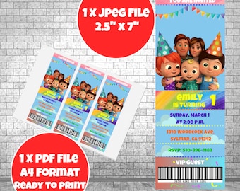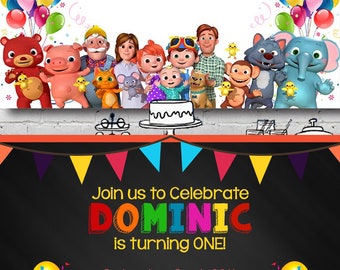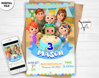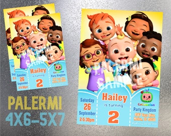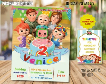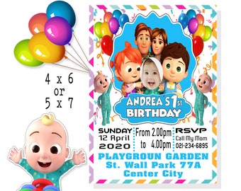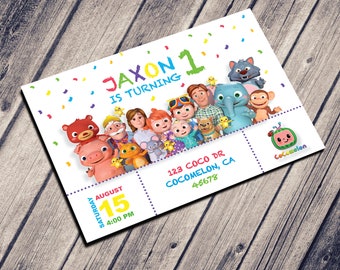 This product listing is for a personalized birthday invitation in digital printable file only. Cocomelon invitation not an instant download and not editable. One 1 300 dpi high resolution jpeg image file formatted at 5 inch in width and 7 inch in height. Easily editable printable.