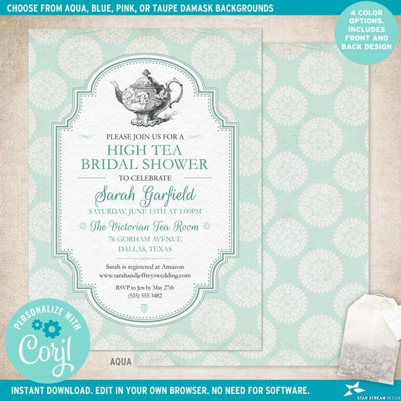 Editable high tea invitation template blank. Host a holiday gathering a cocktail party or a business event. Please read full listing description save time and money when you diy edit and print this party invitation template by the digi dame party shoppe. Surprise party invitation templates free. A beautiful bridal shower invitation is a promise to guests that they can enjoy a fun bridal shower to honor the bride to be that they cherish so much.